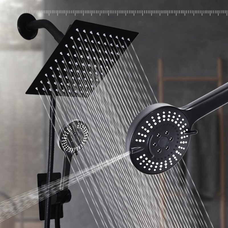 “MLD High-Pressure Square Rainfall Shower Head Set with 2+5 Spray Modes – Handheld, Stainless Steel & ABS, Includes 59″” Extra Long Hose, 3-Way Diverter, Adhesive Mount, No Power Needed – For Bathroom Decoration – Perfect Gift for Christmas & Halloween”