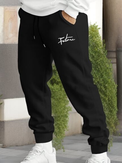 [Geometric Pattern Casual Outdoor] Men’s Casual Joggers – Comfortable Polyester Sweatpants with Drawstring, Geometric Pattern | Machine Washable, Autumn Winter, Outdoor