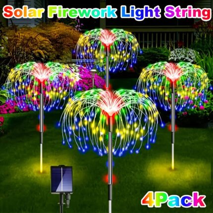 8/4pcs Solar Powered 560/320 LED Fireworks Lights – Multi-Color/Warm Light/Cool Light, IP65 Waterproof with 8 Lighting Modes, Outdoor Christmas Decorative Lights for Villa, Patio, Balcony, Path, And Lawn