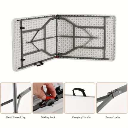 1-person 6-foot Heavy-duty Portable Folding Table With Handle – Desk And Outdoor Camping, Picnic, Party, No Need For Electricity, Space-saving, Compact, Lightweight, Easy To Carry, Multi-functional Design (With Anti-collision Corner Guards)