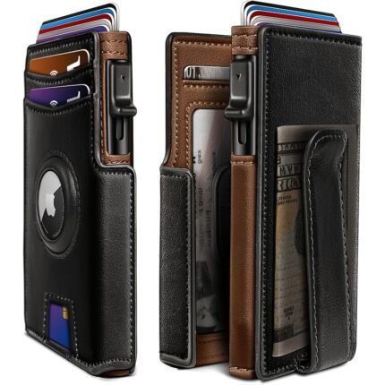 Ultra-thin magnetic flip Men’s wallet Airtag contrast color ultra-fiber rfid anti-theft large capacity Men’s wallet(Airtag not included)