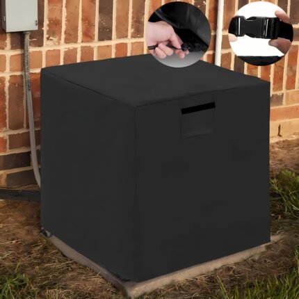 Windproof Snap Fastener, Drawstring, 2 Handles, 2 Ventilation Holes, Outdoor Air Conditioner Cover for Patio