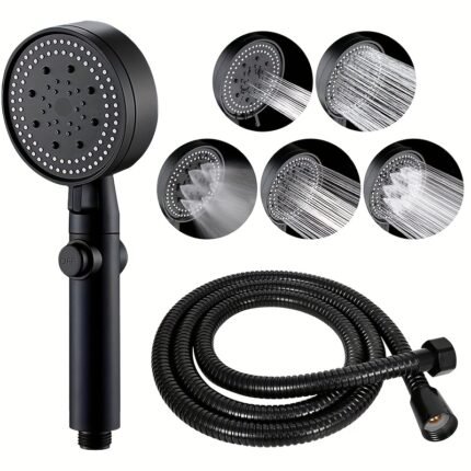Black 5-Setting Off Key with 59-inch Black Hose, Home Shower Head, 5-Speed Air Pressure Spray Nozzle, Handheld Showerhead, Bath Tool Set