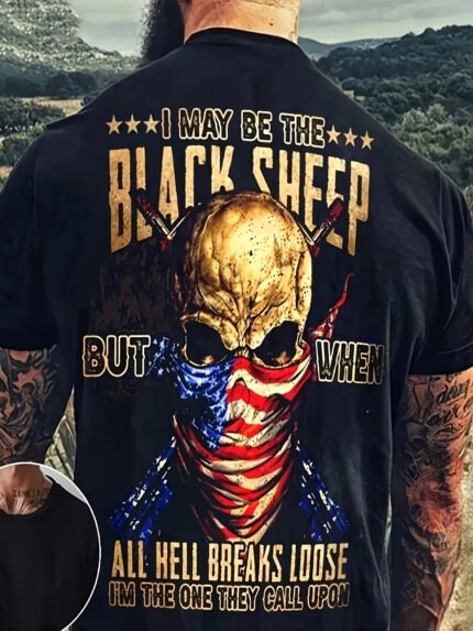 Men’s Big & Tall Graphic Tee – Bold Back Design with American Flag Skull – Heavyweight Statement Shirt – Machine Washable Regular Fit T-Shirt for Edgy Streetwear & Casual Outfits, Casual Attire, Retro Aesthetic, Longlasting Colors, Short Sleeve Top, Street Style Lovers