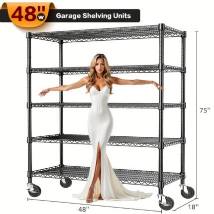 1750 lbs Steel Storage Shelving 5-Tier Utility Shelving Unit Steel Organizer Wire Rack for Home, Kitchen, Office, Garage, 1750 LBS Capacity 17.7″ D x 47.2″ W x 72.3″ H