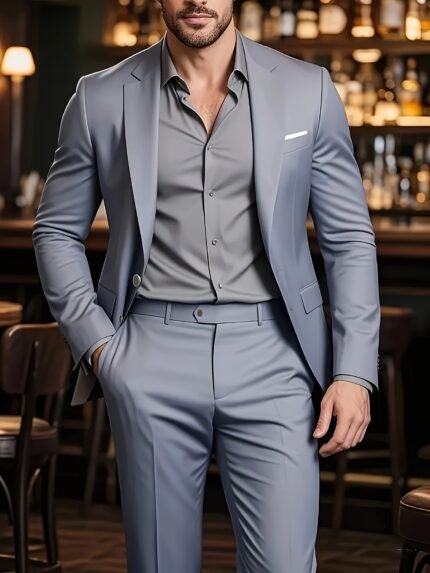 Men’S Suit 2pcs Set, Including Jacket and Pants, Fashionable Formal Wear Suitable for Parties, Gatherings, and Weddings