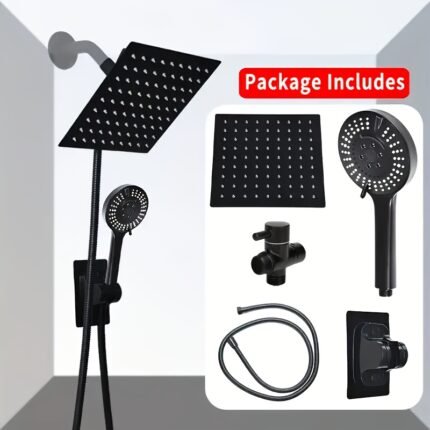 YAGATAP 8-Inch All-Metal Three-Way Shower Head, High-Pressure Dual Spray Attachment with Handheld Spray Head, Upgraded Extendable Arm & Adjustable Height, Modern Brushed Finish for Hotel Bathroom, Kitchen, or Home Use, Kitchen Sink Accessory, Contemporary Design, Sleek Metallic Finish
