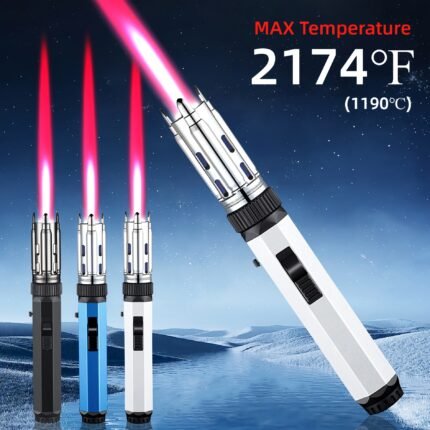 Yaesina 8.3″ Large Torch Lighter with Adjustable Jet Flame, Refillable Butane Gas Tank, Windproof & Safety Lock – Ideal for BBQ, Campfires, Emergencies – Available in Black, Blue, White (Butane Not Included), Bbq Lighting Tool | Sleek Torch Design | Windproof Lighter