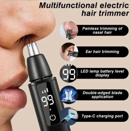 Men’s Electric Nose Hair Trimmer with LCD Display & Dual Speed Settings – Cordless,, Wet/ Use, Design, 90-Day Life, Type-C, Portable Epilator for Nasal Hair Removal – Ideal for Beard & Mustache Trimming, Rechargeable, Compact & Lightweight, Dual-Blade System,, Port, Suitable for Sensitive Beige