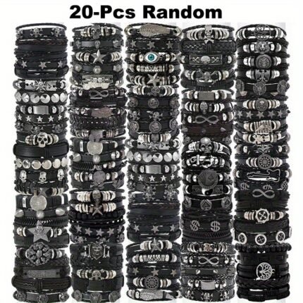 10/20/30pcs Punk Hip Hop Bracelets Set – Gothic Stackable Jewelry with Skull, Cross, Star, Infinity Symbols – Edgy Layered Bracelets for Men, Teens, Goth/L Punk Style – Halloween, Birthday, Graduation, Father’s Day Gifts – Durable Faux Leather – No Maintenance Costume Everyday Jewelry Set, Gothic Accessories, Stylish Craftsmanship, Metal Dots, Statement Pieces, Teen Accessories, Men’s Fashion