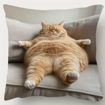 [Ginger Cat Throw Pillow] 1pc 18×18 Inch Super Soft Short Plush Double-Sided Throw Pillow – Adorable Ginger Cat Lounging on Sofa Design, Contemporary Home Decor for Living Room & Bedroom, Machine Washable with Zipper Closure (No Insert), Bedroom Comfort, Playful Design, Comfortable Texture