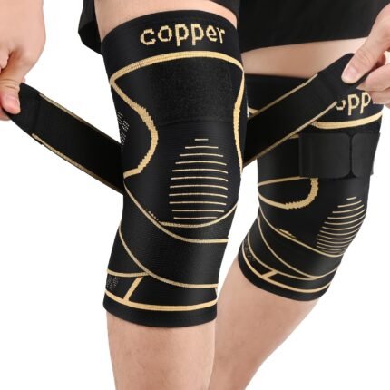 Copper Knee Braces with Strap for Knee Women and Men (2pcs), Knee Compression Sleeve for Joint, Knee Support for Working, Running, Weightlifting (M)