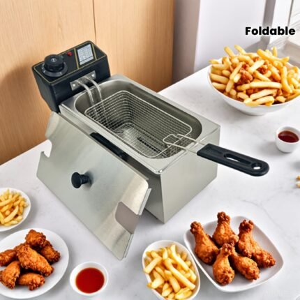 [Stainless Steel Frying Basket] Heat-Resistant Stainless Steel Frying Basket with Foldable Handle | Easy to Clean, Suitable for Frying French Fries, Chicken Wings, And Snacks, A Cooking Tool for Both Home And Commercial Kitchens