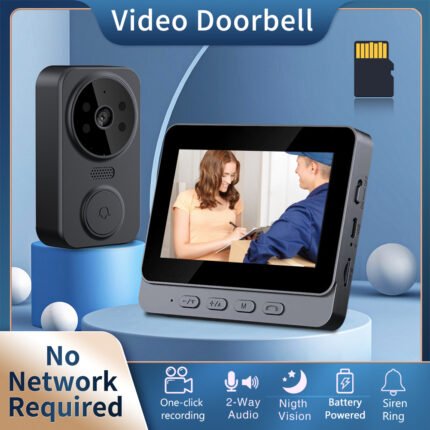 Video Doorbell, Wireless Doorbell Camera, HD Video & With 4.3 Inch Display Screen Real Time Indoor Monitor, WiFi Visual Doorbell, No App Required, No Network Required, Images & Videos Recording, Local Storage, Night Vision, 2-Way Audio, Touch Control