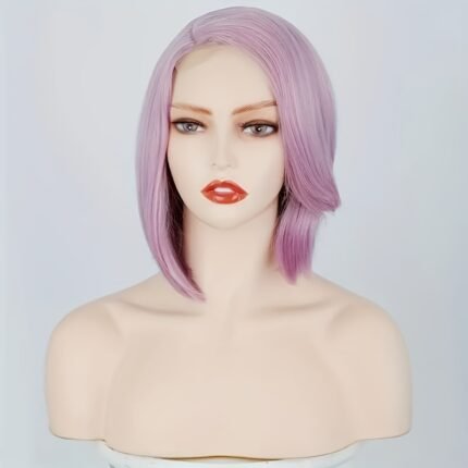 Elegant Women’s Purple Shoulder-Length Wig – Straight, Side-Parted Synthetic Fiber Hair, Heat-Resistant, Rich Color Palette, Ideal for Parties & Role Play, Hair Wig