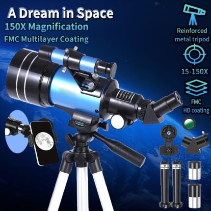 [AFTERWAVE 70mm Telescope] AFTERWAVE 70mm Large Aperture Refractor Telescope | Blue Version 30070 | Beginner & Professional Dual-Mode Monocular 150X HD Imaging | Includes Aluminum Alloy Tripod + Finder Scope + Phone Mount Kit | View Lunar Craters, Planetary Surfaces, Deep-Sky Objects
