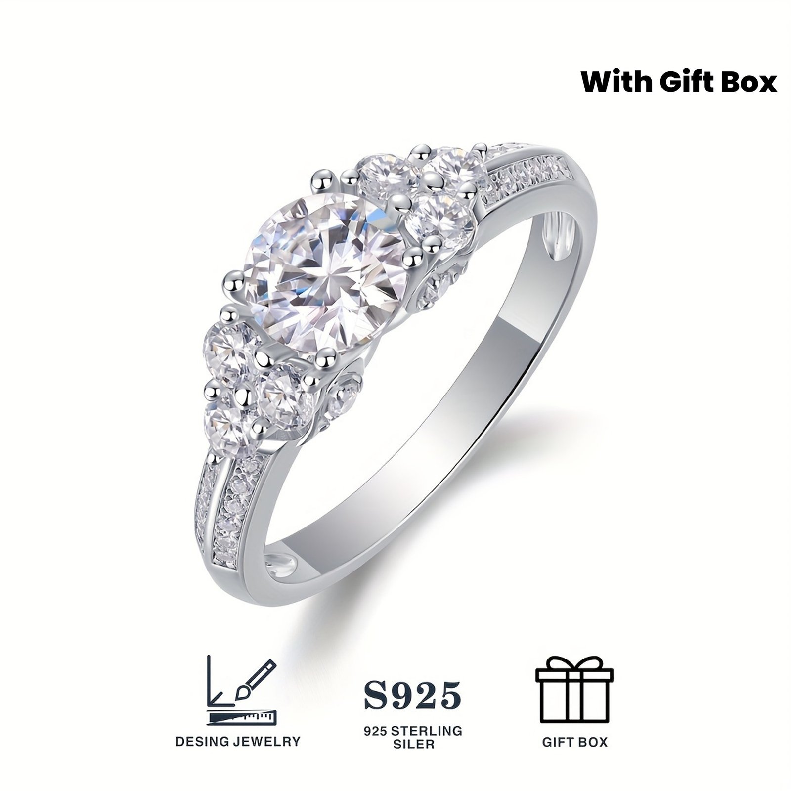 1 Carat Moissanite Ring for Girl, 18K gold plated Plated 925 Sterling Silvery Ring Stackable, Homecoming/Graduation Season Gift Casual Attire Valentine’s Day, Birthday Gift Engagement, Wedding Jewelry, Evening Decorations, High-end Gifts with Gift Box