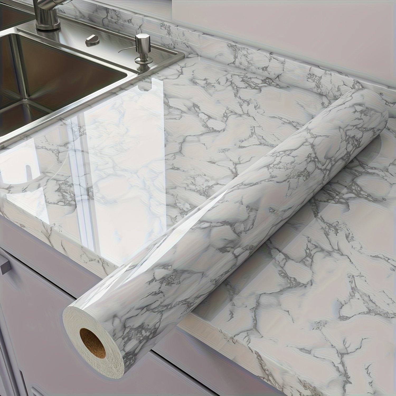 1 Roll Of Marble Patterned Waterproof Wall Sticker – Heat-resistant And Oil Resistant Self-adhesive Removable PET Film, With A Glossy And Glossy Effect, Used For Kitchen And Bathroom Decoration, Furniture Drawer Organization, And Easy Modification
