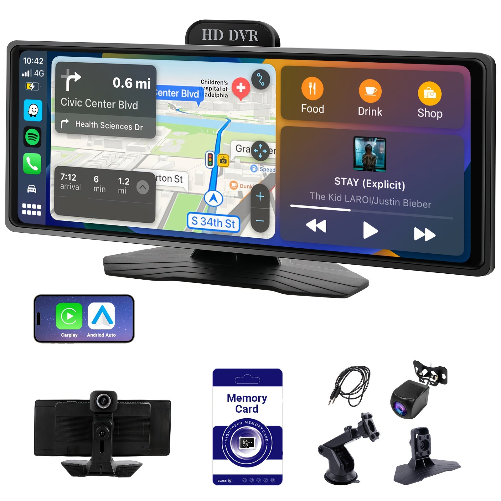 10″ HD Car Touchscreen with 4K Display, Wireless CarPlay/Android Auto, Wireless Navigation, HD Audio, Wireless Phone Connectivity, 64GB TF Card Included, USB-Powered for All Vehicles, Vehicle Audio Upgrade, Modern Vehicle Accessory, HD Screen, Incar Navigation, Car Entertainment System, Touchscreen Dashboard, Sleek Car Display, Highresolution Display, Advanced Car Tech, Android Auto Compatible, Daily Commuters, Modern Vehicle Owners