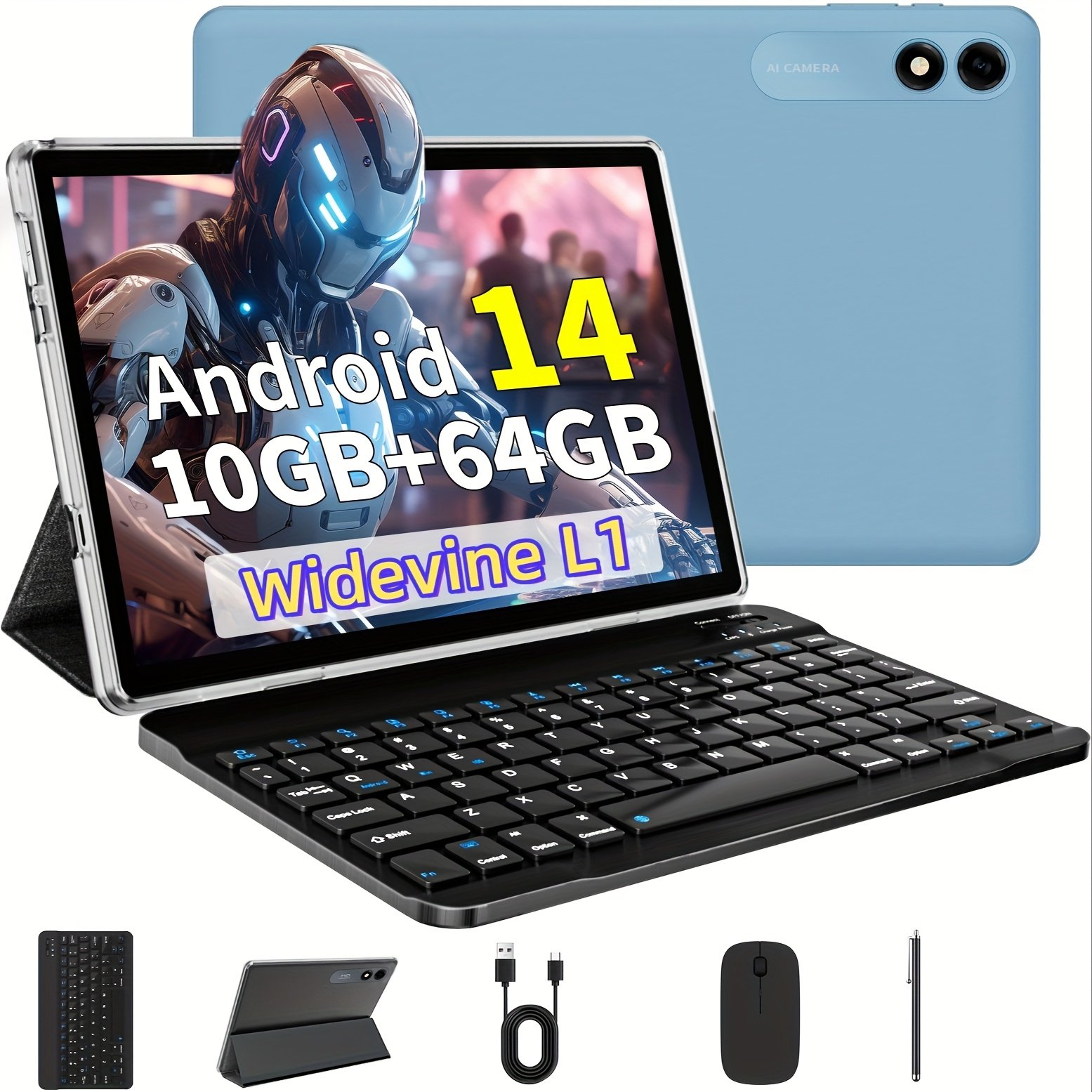 10-inch Android Tablet, 2024 Latest Android 14 Tablet 10GB (4+6) RAM 64GB ROM, 1TB TF Expansion, with Case, Powerless Stylus, Keyboard, Octa-Core Tablet, 5G Dual-Band WIFI Tablet, 5MP+8MP Camera
