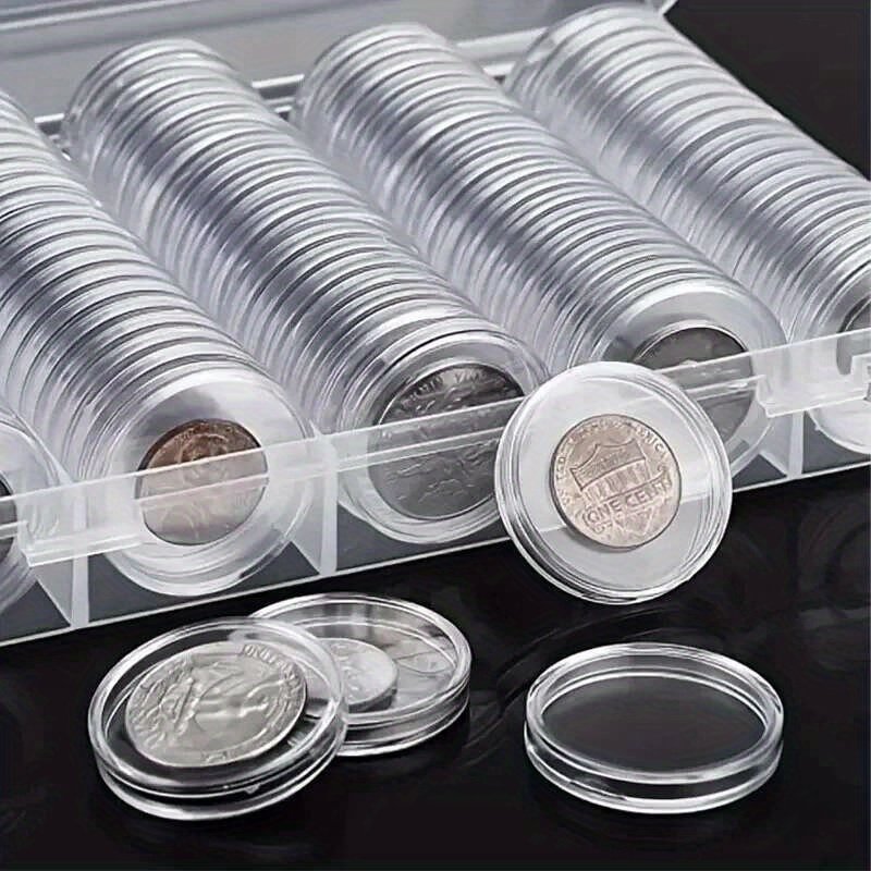 100pcs clear capsule holder case transparent collectable coin storage box with multiple compartments ideal for commemorative items coin collection storage transparent storage box secure closure lid coin holder