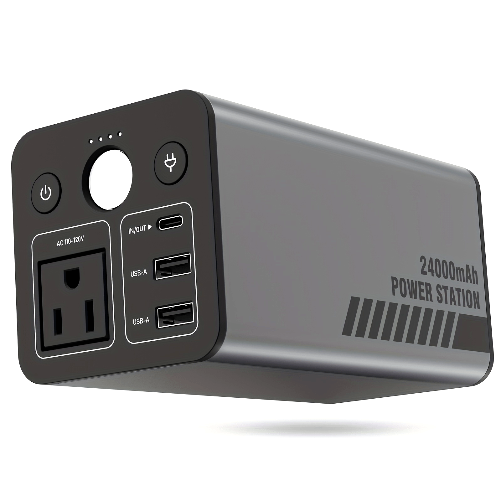 100W Portable Power Station with AC Outlet, 24000mAh/88.8Wh High-Capacity Battery, 110V/220V Dual Voltage, Compact & Lightweight Design for Camping, Home, Office, and Outdoor Use, Portable Charger