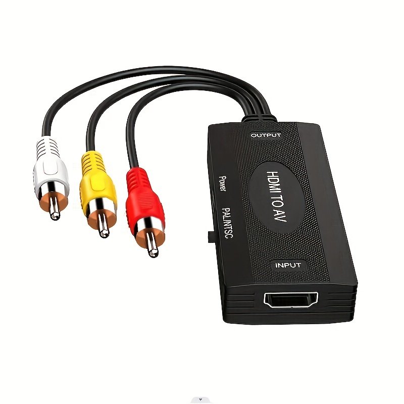 1080P RCA to AV Converter Adapter – Upscale Old Videos to HD, Supports PAL/NTSC, Compatible with TV/PC/PS3/STB/Xbox, VHS/VCR/Blue-Ray DVD Players, Easy Plug and Play
