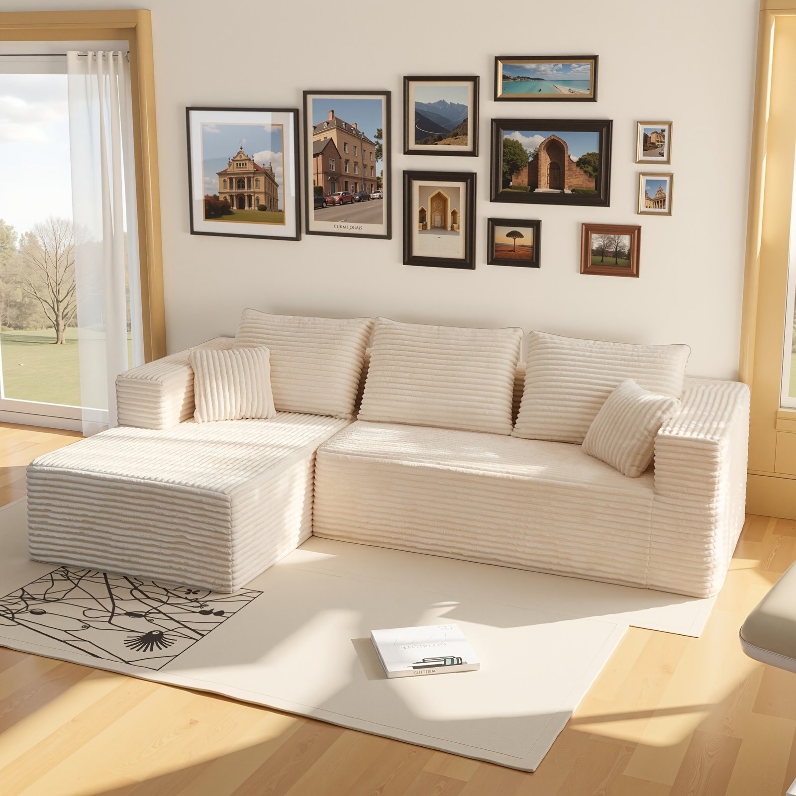 108″Plush Cloud Sectional Couch Comfy Chaise,Sofa bed, Boneless L Shape, Deep Seat, No Assembly Required,Minimalist Modular Sleeper for Living Room, Bedroom, Apartment Lounge