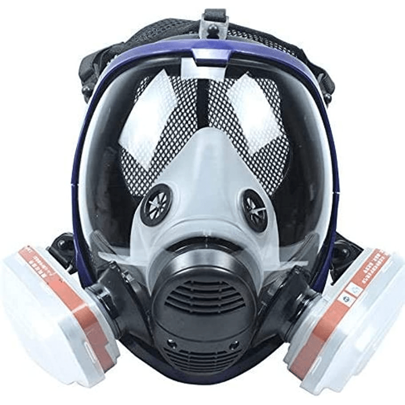13 inch full face respirator mask with activated carbon filter purification system reusable silicone hypoallergenic on closure for protection safety gear modern respirator adjustable strap mask