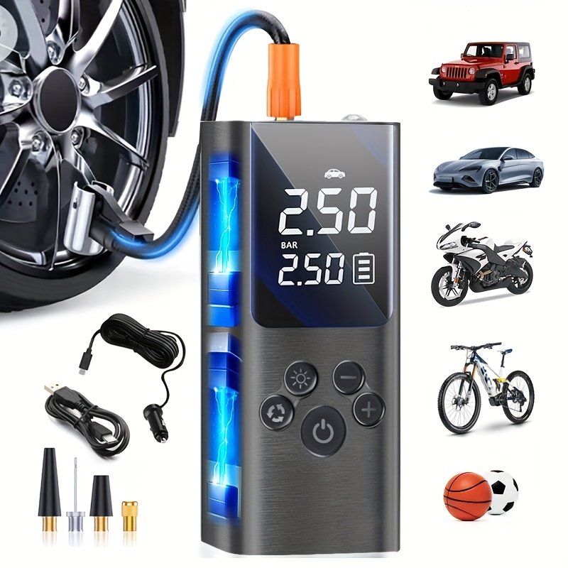 150PSI Cordless Tire Inflator Portable Tire Inflator, 150PSI Cordless Air Compressor with Digital Gauge & LED Light, USB Rechargeable, Fast Inflation for Cars, Bikes, Motorcycles & Sports Equipment, Air Pump for Car Tires