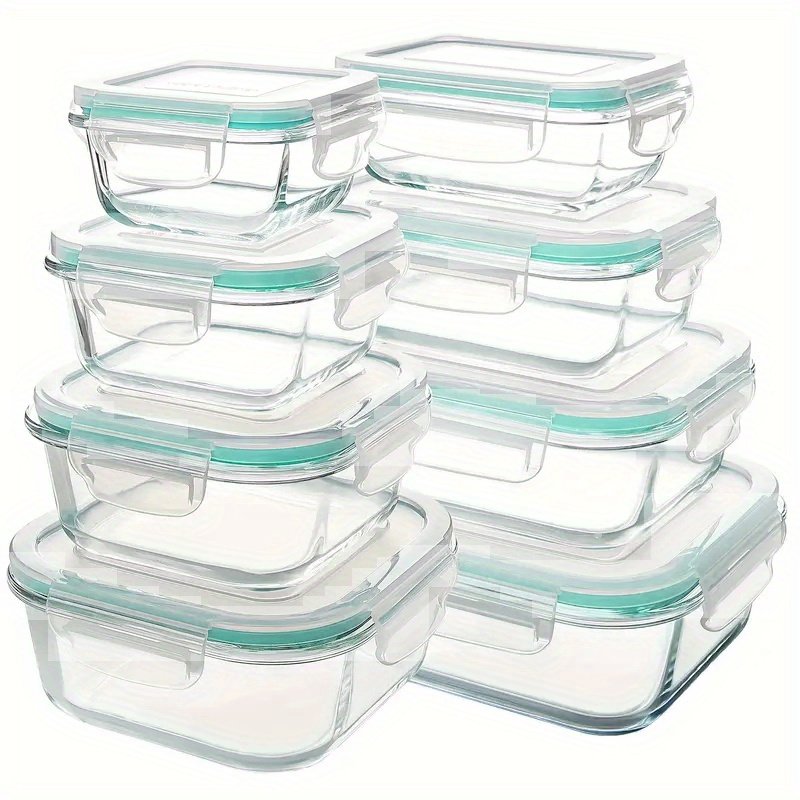 16pcs airtight glass food storage containers with leakproof lids microwave oven safe stackable lunch boxes for meal prep salads fruits vegetables sandwiches durable space saving design for fridge pantry ideal for home commercial kitchens kitchen organization modern kitchenware sturdy construction kitchen organizers office lunches sealed storage durable glass