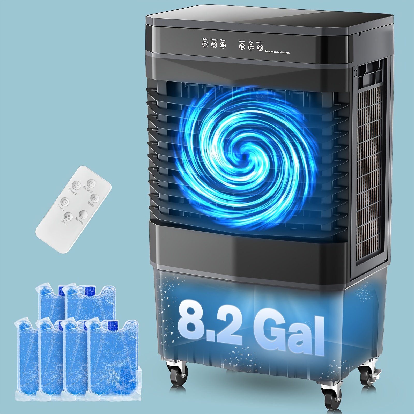 1800 2800cfm evaporative air cooler portable swamp cooler w 12h timer 3 ice packs large water tank for bedroom office garage patio indoor outdoor use