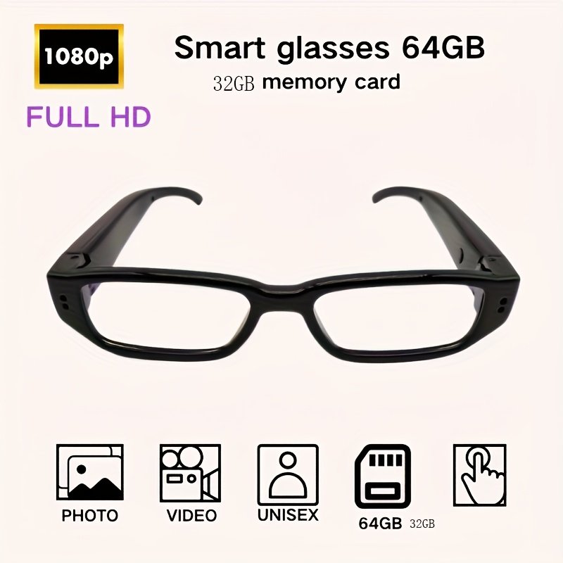 1pc Smart Glasses with 1080P HD Video Recording, 32GB/64GB Memory Card, Portable Photo & Video Camera for Cycling, Conference Recording, Outdoor Sports – Durable PC Material, Black Frame, Ideal for Vlogging & Photography, Vlogging Accessory, Sleek Design, Highquality Lens