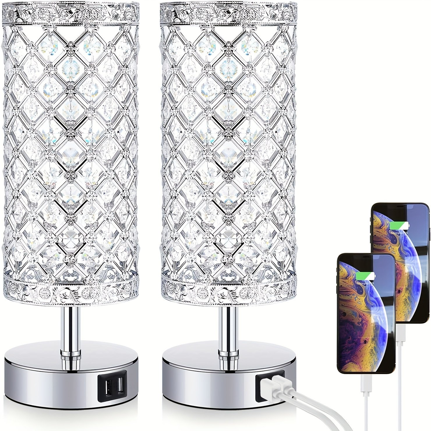 2 Pack/1 Pack Touch Control Crystal Table Lamp, Bedside Nightstand Lamps With 2 USB Charging Ports, 3-Way Dimmable, K9 Crystal Decorative Desk Lamp For Bedroom, Girls Guest Room, Living Room, Bulbs Included