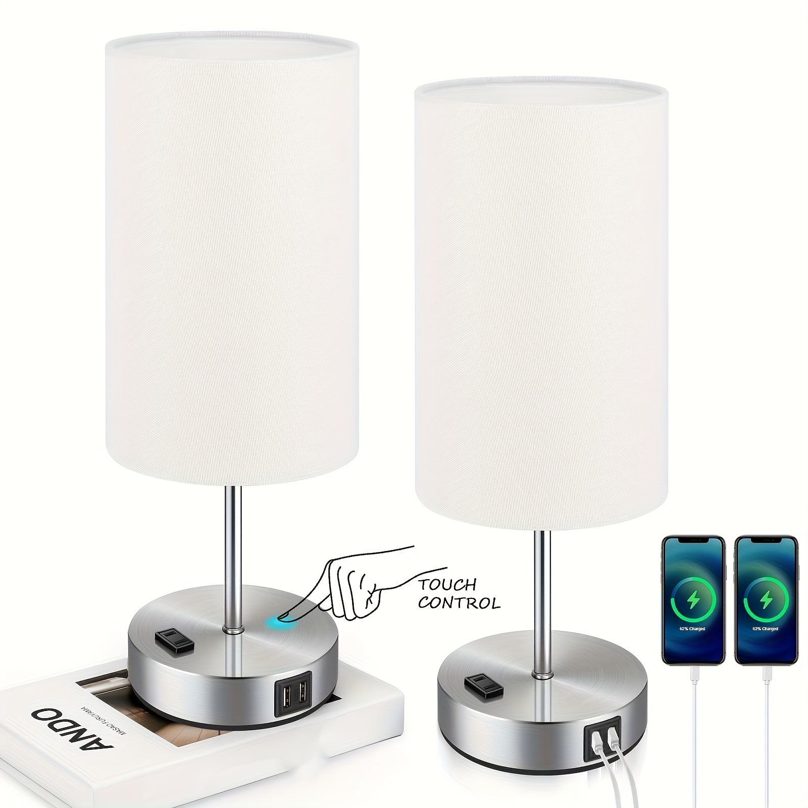 2 Pack/1 Pack Touch Control Table Lamps With USB Ports & AC Outlet, 3 Way Dimmable Bedside Lamps With Fabric Shades, A19 LED Bulbs Included, Perfect For Bedroom, Living Room, Reading