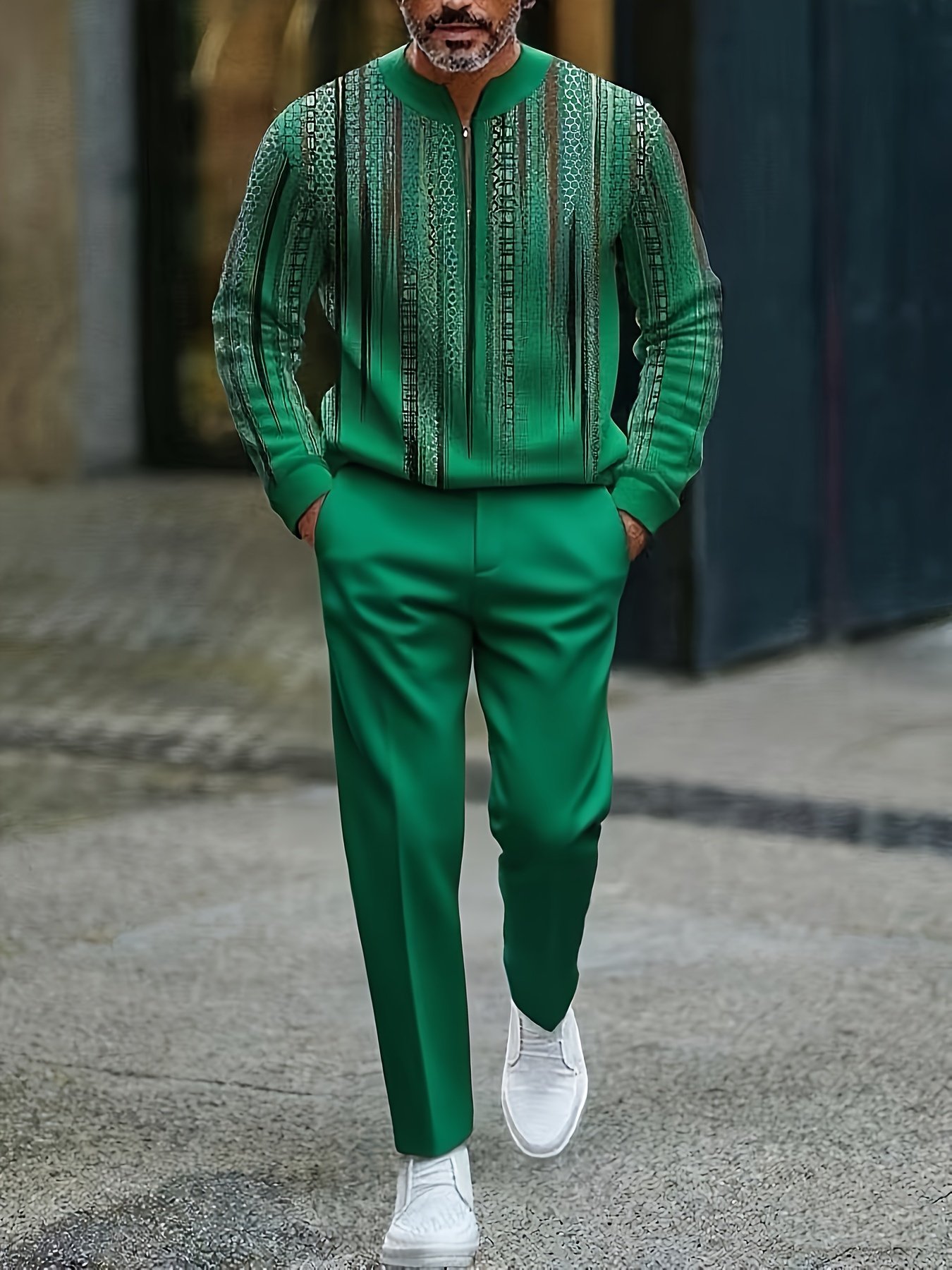 2-Pack | European And American Men’S Long-Sleeved Trousers Sports Suit | 3D Printed Pattern | Half-Open Collar Top | High-Quality Polyester Fabric, Wrinkle-Resistant And Easy to Care for | Suitable for Fitness And Outdoor Casual Style