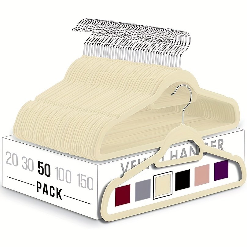 20/ 50 Pack Velvet-Flocked Non-Slip Hangers, Deluxe Slimline Suit Hangers Space Optimized, Reinforced Thick Clothes Hangers for Winter Coats & Knitwear