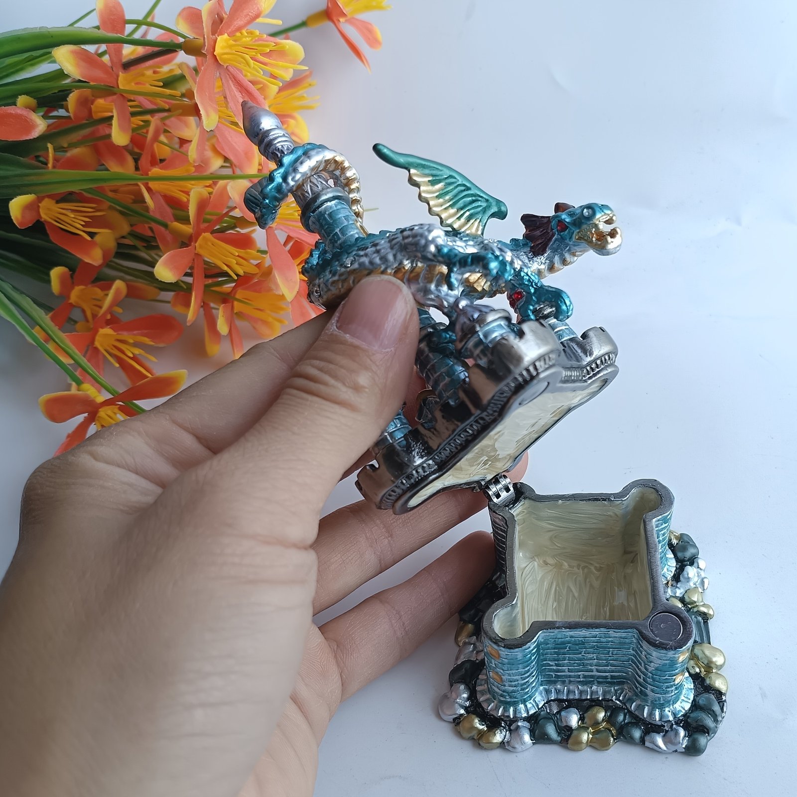 2025 New Dragon Castle Enamel Alloy Jewelry Box – Vintage Fantasy Desktop Ornament with Magnetic Closure, Intricate Dragon & Castle Design, Durable Metal Construction for Home Decor, Collectors & Gift Ideas, Dragon Decor, Collector’S Item, Fantasythemed Design, Enamel Craftsmanship