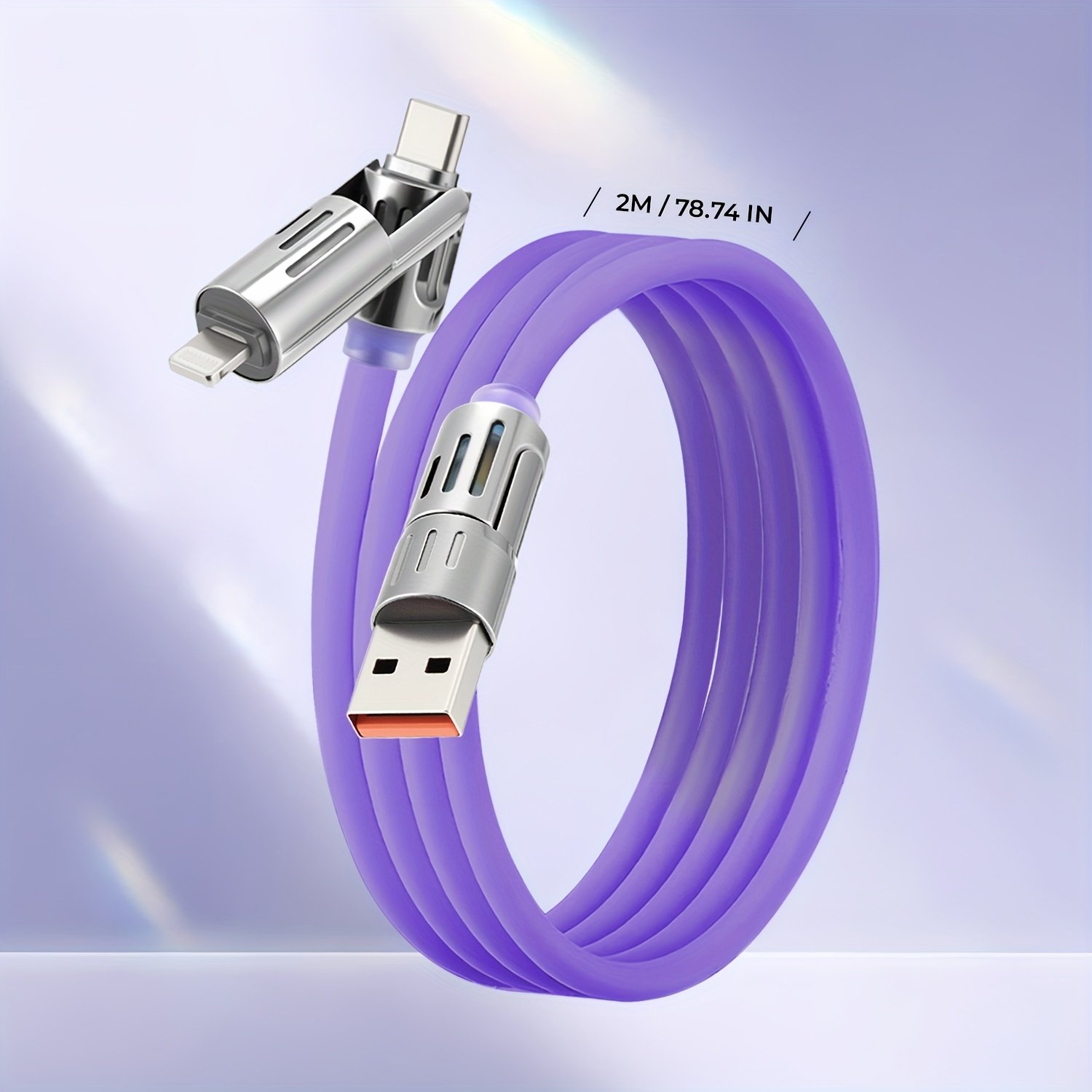 240W 4-in-1 Multifunctional USB Liquid Silicon Aluminum Alloy Data Cable Charging, USB Charger Data Cable, Suitable for Fast Charging and Data Transfer, Suitable for Samsung, Xiaomi, Apple, Multi-Device Charging, Ultra Fast Charging Data Cable