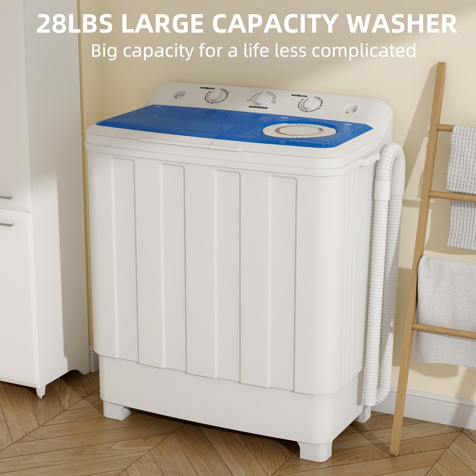 28lbs portable washing machine semi automatic compact twin tub laundry washer with built in drain pump 18lbs washer and 10lbs spin dryer combo for apartments dorms rvs