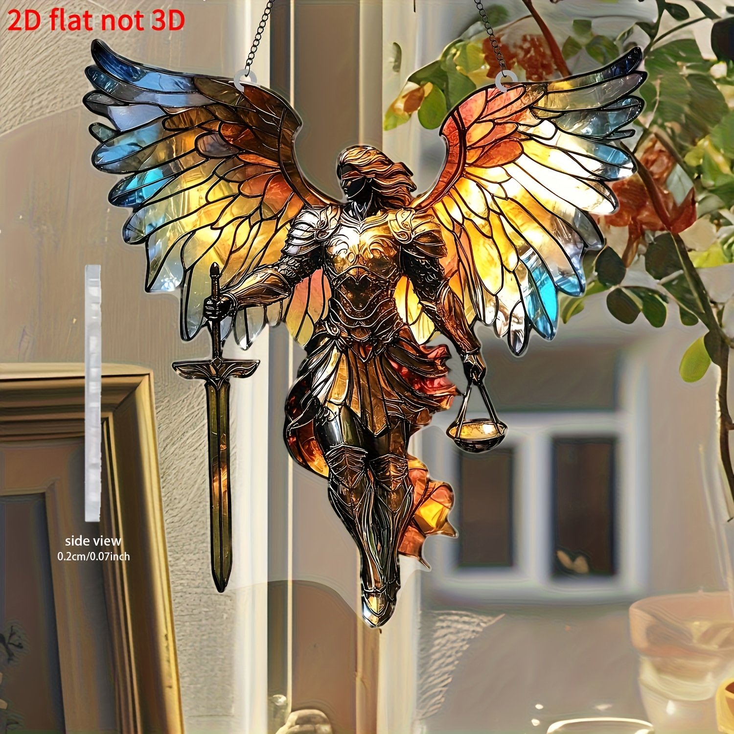 2D Flat – 1pc 2D Flat St. Michael Acrylic Sunshade Window Decoration (7.5″ X 7.9″), Religious Themed Interior Wall Decoration for Home, Office And Cafe, Garden Decoration, Unique Home Gift, Holiday Gift, Spring Decoration