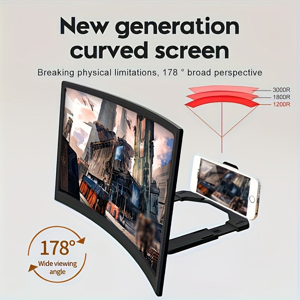 2pcs 12inch Screen Magnifier, Suitable for Mobile Phones- Curved Phone Magnifier Screen 3D HD Screen Magnifier Lazy Stand, Comes with Screen Amplifier, Compatible with All Smartphones, Universal Phone Stand, Suitable for Home Use- Supports Multiple Viewing Angles and Landscape and Portrait Screen Modes, Black