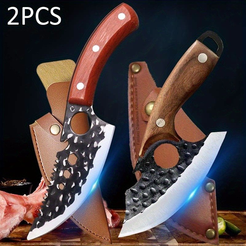 2pcs multi purpose knife kitchen utility butcher cutting peeling meat knife handcrafted bone knife for vegetables meat small pocket kitchen knife stainless steel slicing cooking mini knife