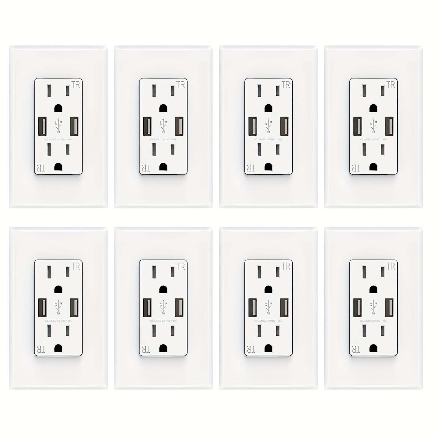 3 pack 8 pack usb wall outlet with dual 4 0a ports 15 amp tamper resistant charging power outlet high speed charging glossy white w wall plate included station modern wall plate durable construction