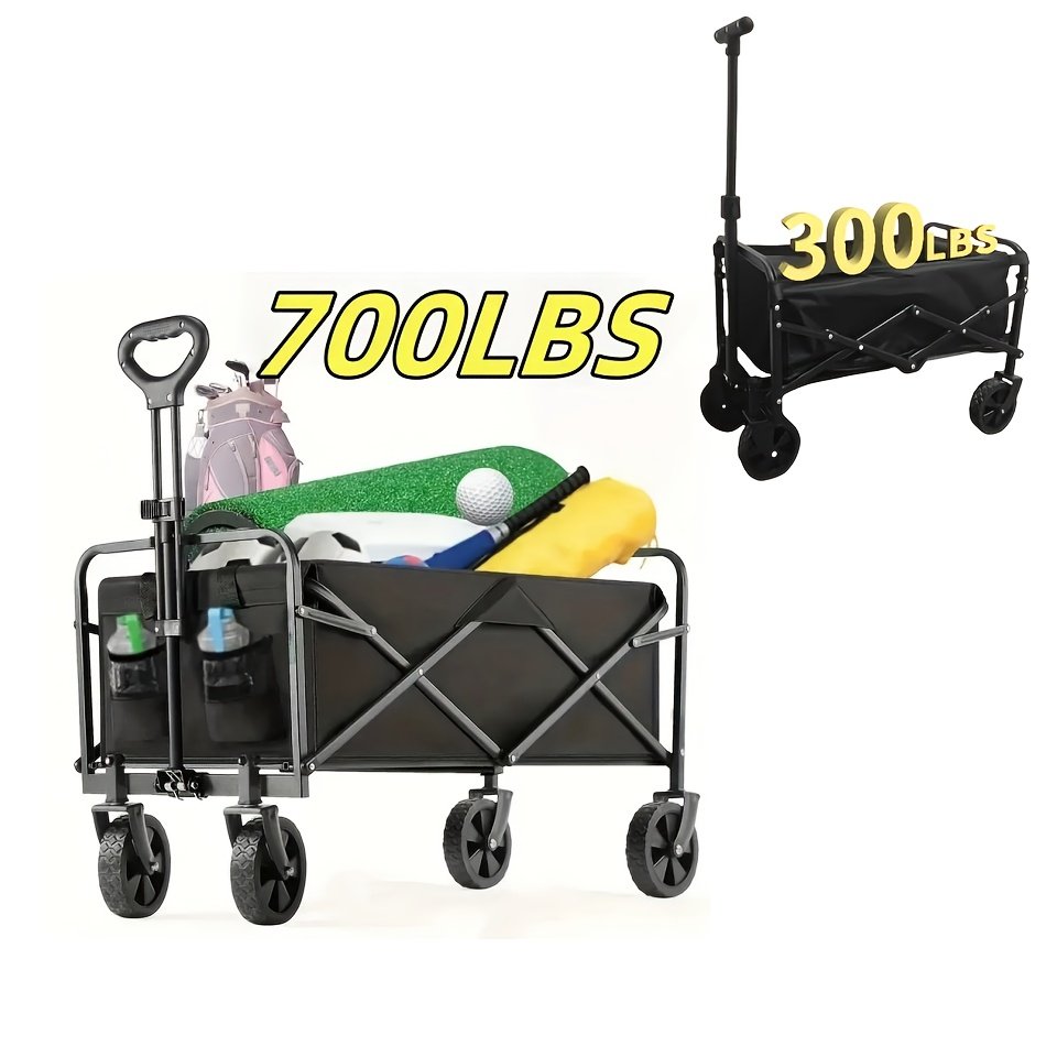 300/700 LBS, Upgraded 360° All-Terrain Heavy-Duty Folding Sports Transport Cart with Adjustable Handle and Cup Holder, Suitable for Camping, Beach Trips, Family Picnics, Gardening, and More – Gift Packaging