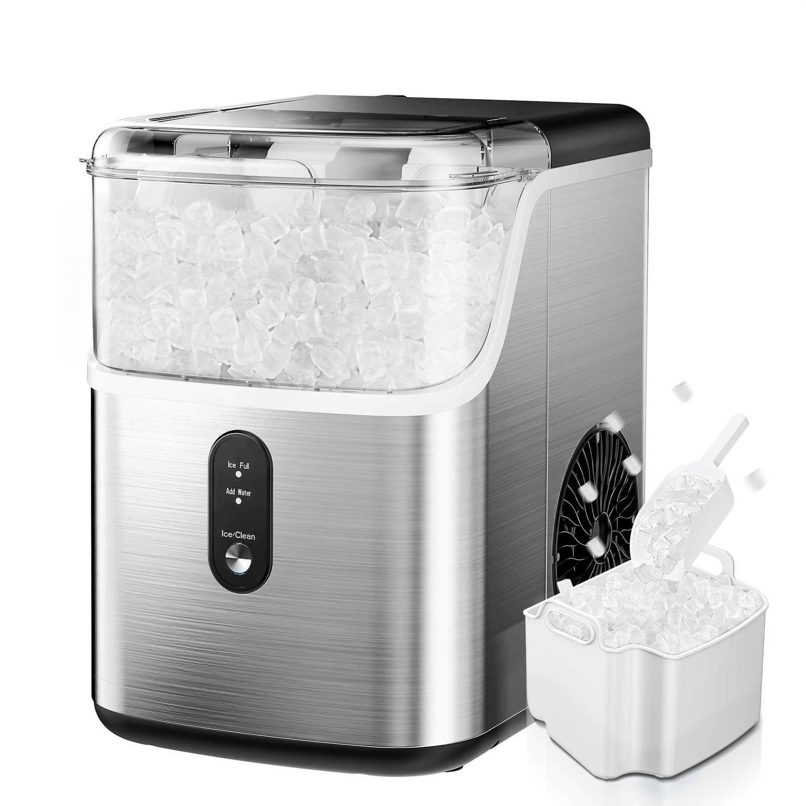 35 Pound Nugget Ice Machine And 26/28 Pound Bullet Ice Machine, Compact & Portable, Self-Cleaning Sonic Ice Maker with Ice Scoop&Basket, Perfect for Backyard BBQ, Camping, Outdoor Party, Kitchen, Black/Sliver/White
