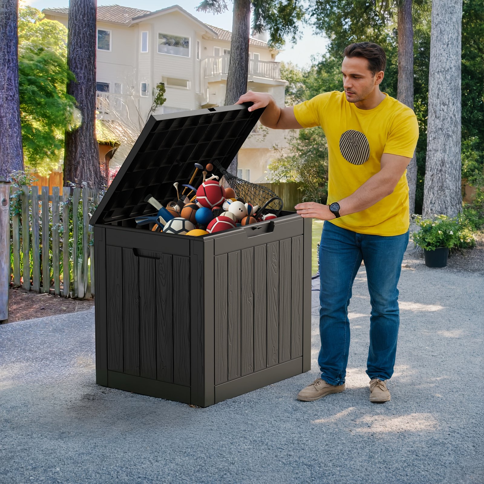 35Gallon Large Outdoor Storage Deck Box, UV & Water-Resistant, Weatherproof Resin Organizer with Lockable Lid for Furniture, Garden Tools, and Toy Storage Ample Space for Indoor & Outdoor Use. Perfect Holiday Gift for Hallowee, Christmas Thanksgiving, Box,Cabinet,Rack for Outdoor Storage