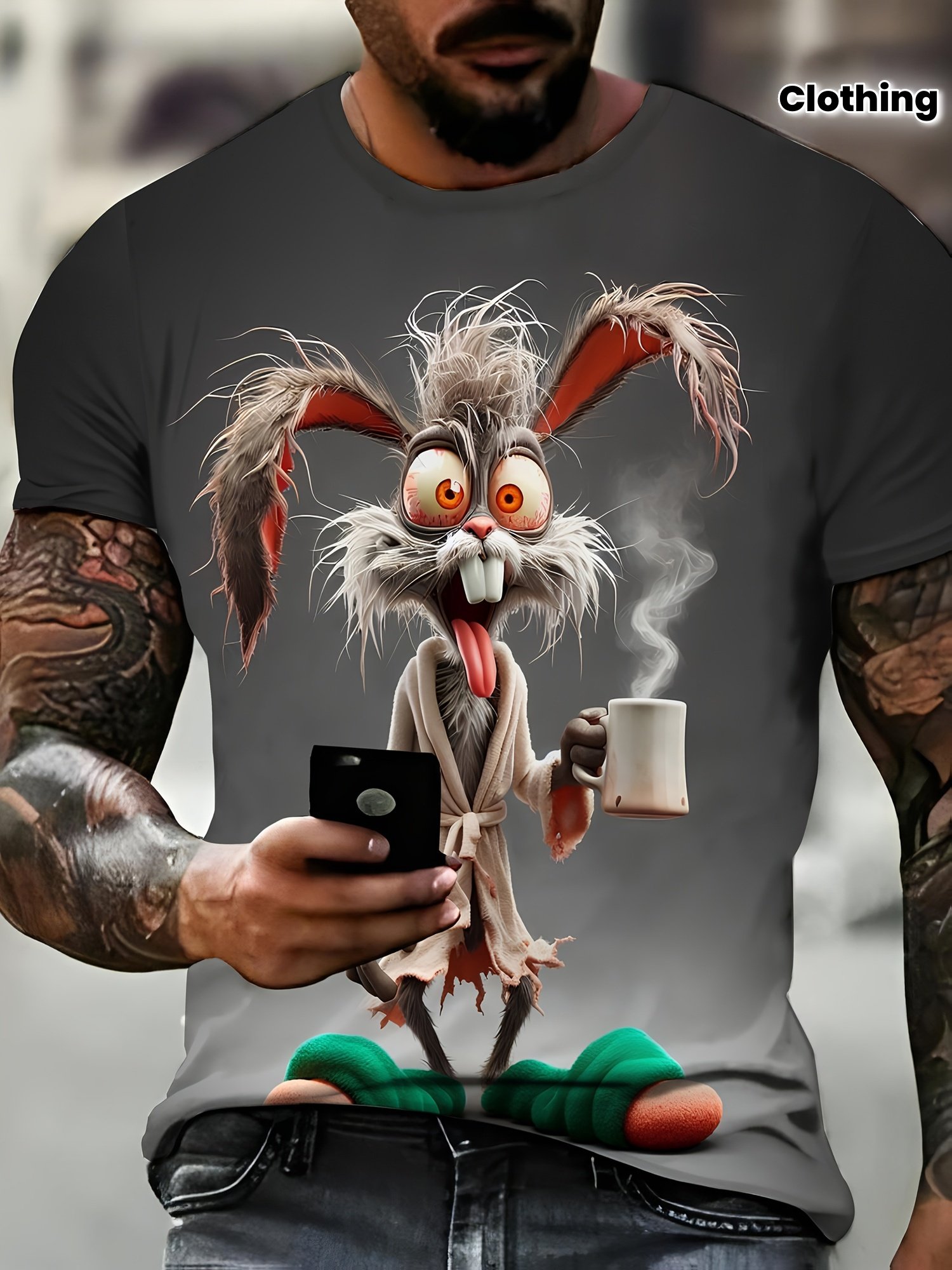 [3D Rabbit T-Shirt] Men’s Funny 3D Rabbit Print 0-Neck Short Sleeved T-Shirt | Street Fashion Hip-Hop Clothing Casual Fashionable Top