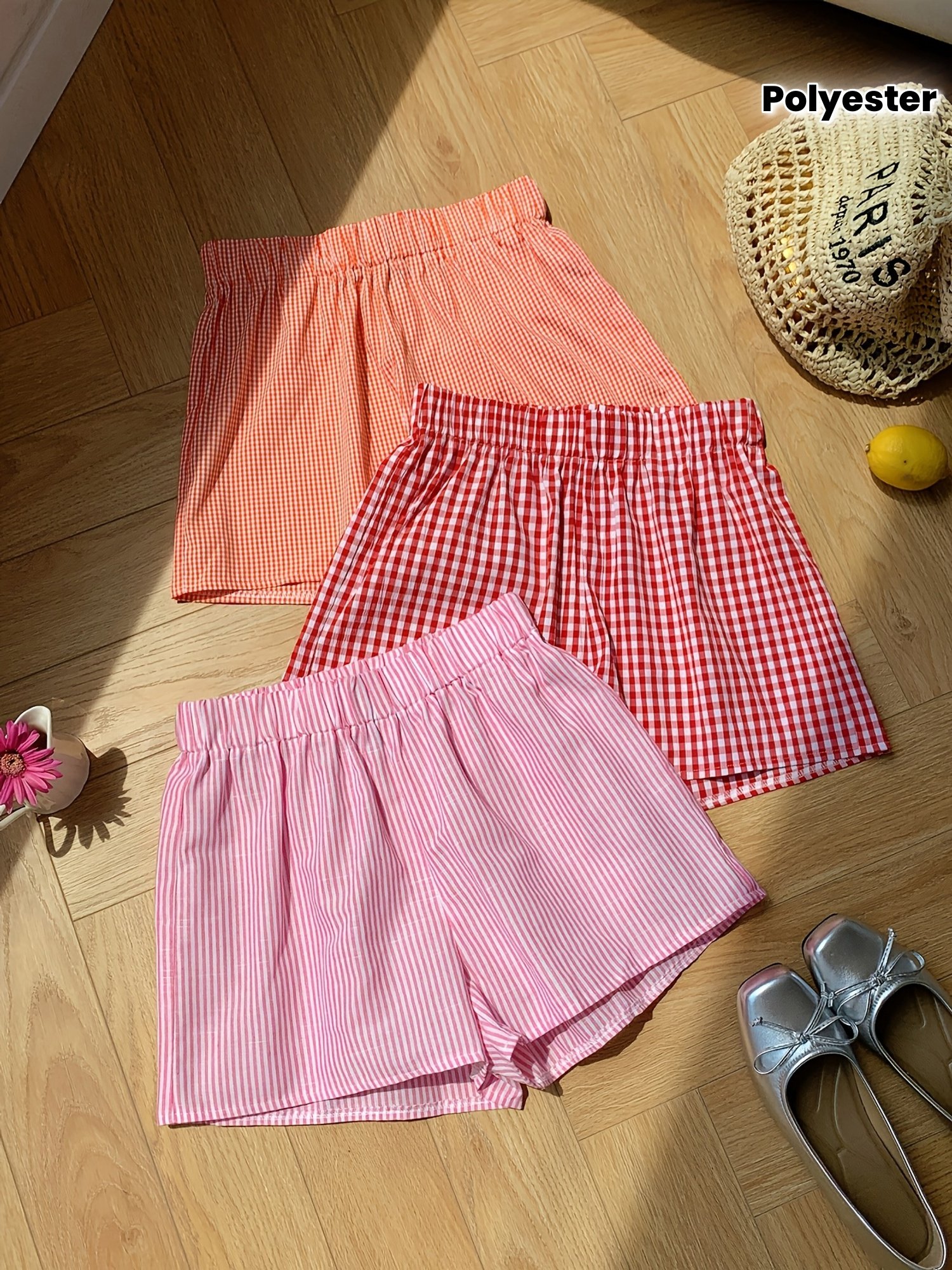 3pcs plaid casual striped shorts