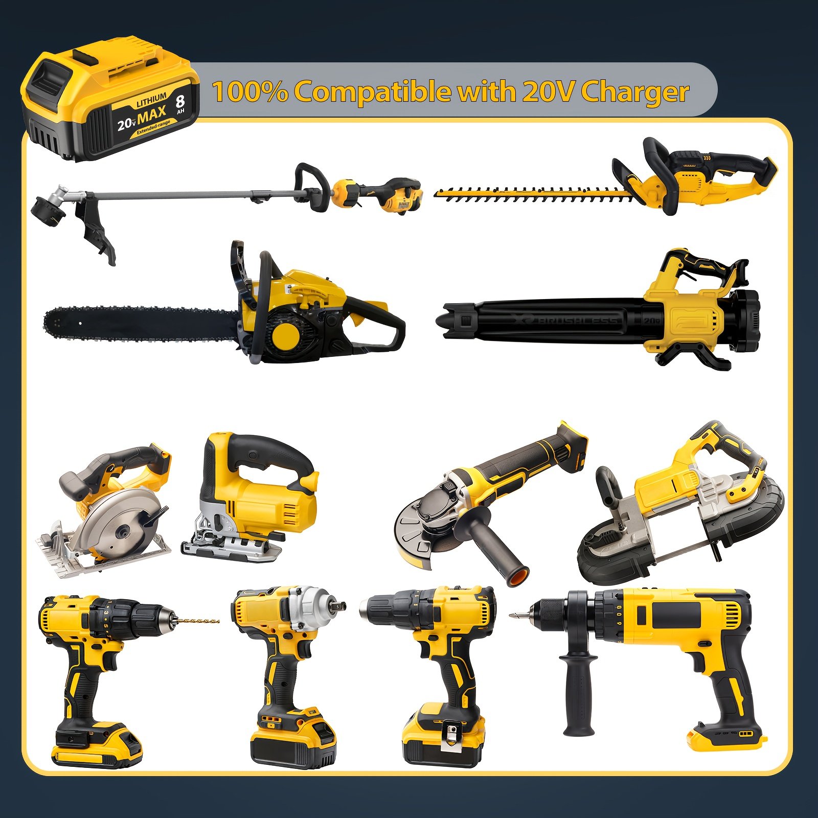 4Pack 20V 8.0Ah Lithium Battery Replacement For Dewalt 20V Battery Compatible With Dewalt 20 Volt Battery DCB200 DCB201 DCB206 DCB210 DCB203 For DeWalt 20V Cordless Power Tools 4pcs